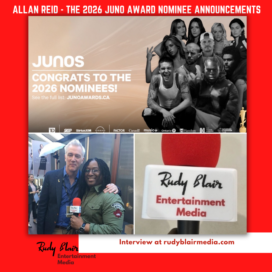 Today (Tuesday January 27th, 2026) the 2026 Juno awards nominations were announced  https://junoawards.ca  .  This years top nominees include Justin Bieber and Tate McRae, with six nominations each the most nominations received in a single JUNO Awards season for both artists. Close behind, Cameron Whitcomb and The Weeknd earn have five nominations apiece.  Daniel Caesar earns four nominations this year and The Beaches with Jessie Reyez received three nominations.  Rudy Blair Entertainment Media  https://rudyblairmedia.com  speaks with  President & CEO of CARAS/JUNO Awards & CEO of MusiCounts  Allan Reid  https://www.instagram.com/allanreidjunos/?hl=en  about todays nominations. (The broadcast will be live from the TD Coliseum in Hamilton, ON, on March 29, 2026, at 8 p.m. ET (5 p.m. PT). It will be Hosted by Mae Martin and air on CBC, CBC Gem, CBC Radio One, CBC Music, and CBC Music’s YouTube channel.)